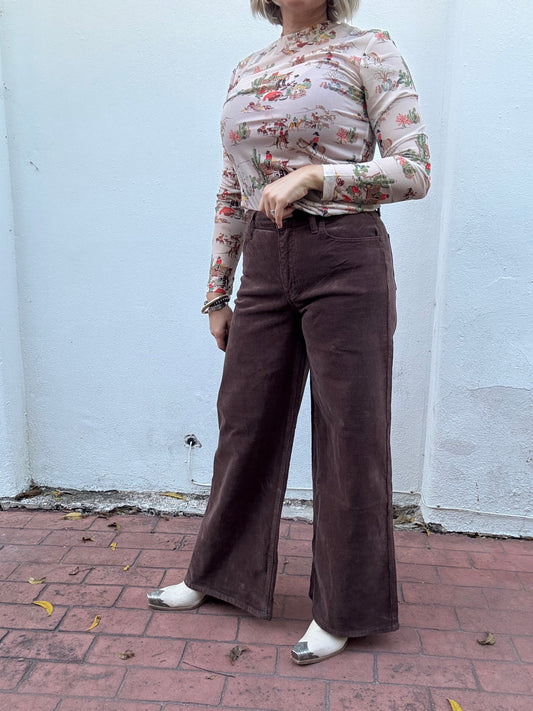 BROWN CORDUROY WIDE LEG PANTS
