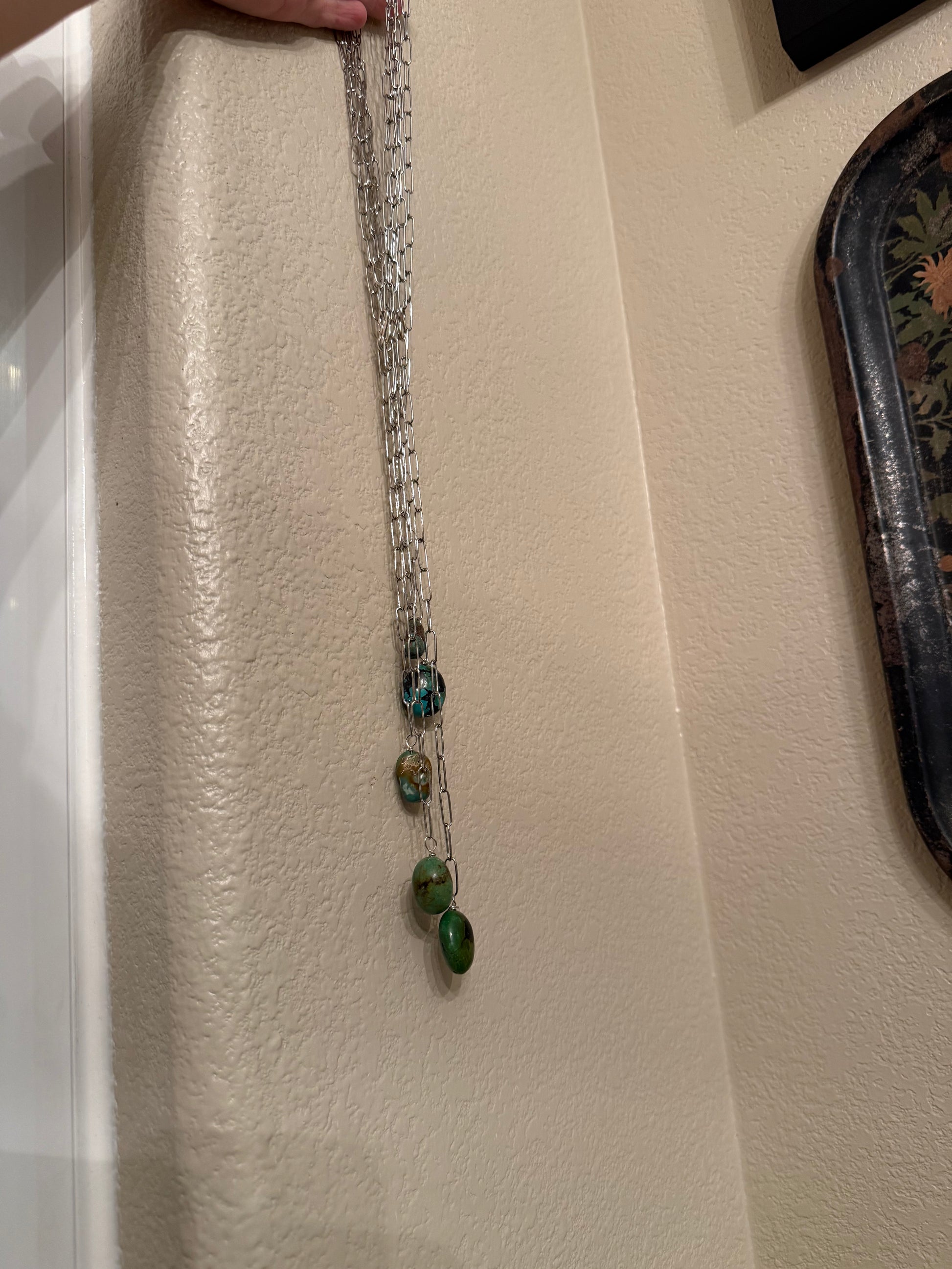 PAPER-CLIP CHAIN NECKLACE WITH TURQ STONE